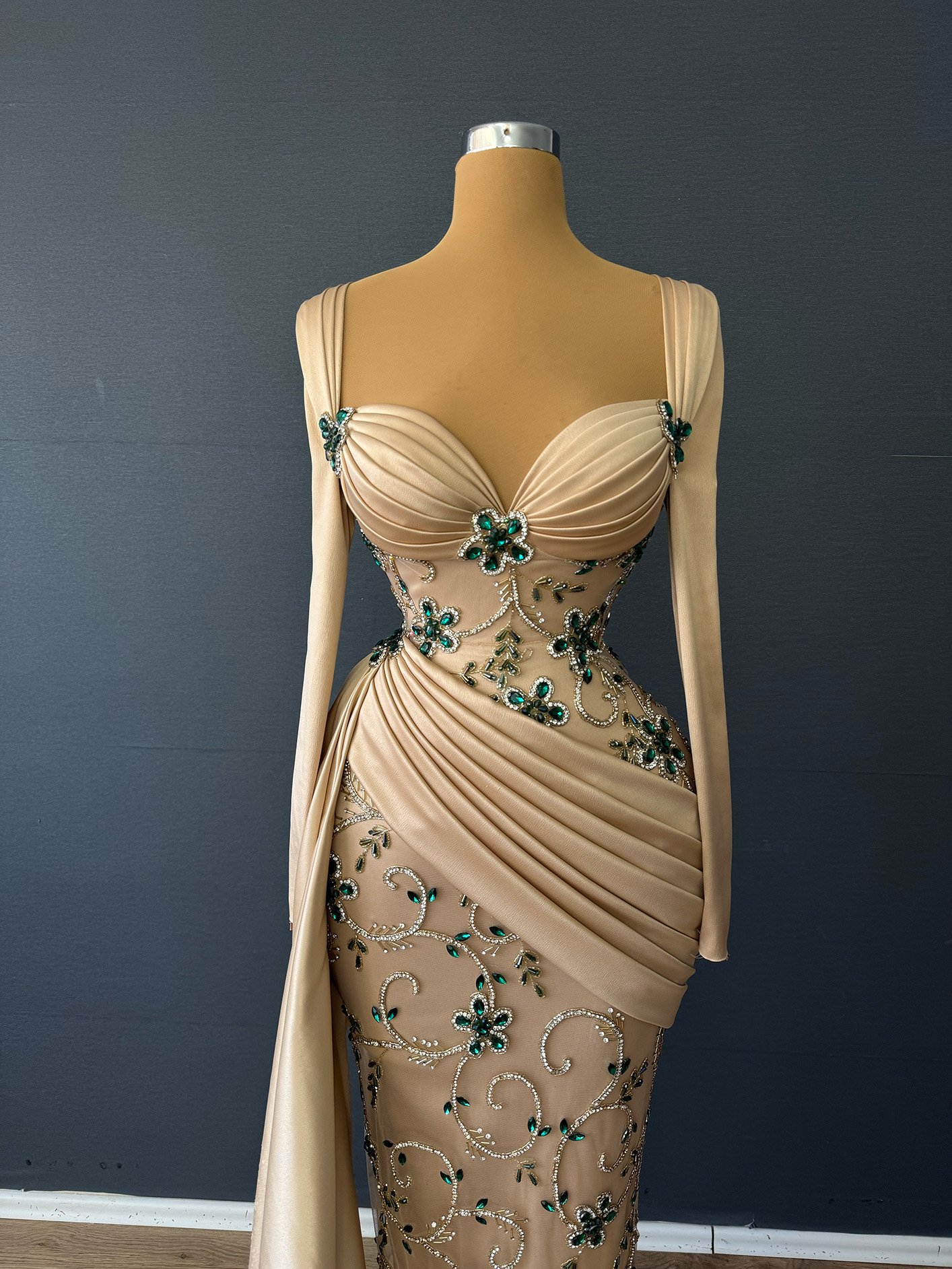 Gold Crystal Beaded Strapless Formal Gown – Corset Mermaid Dress